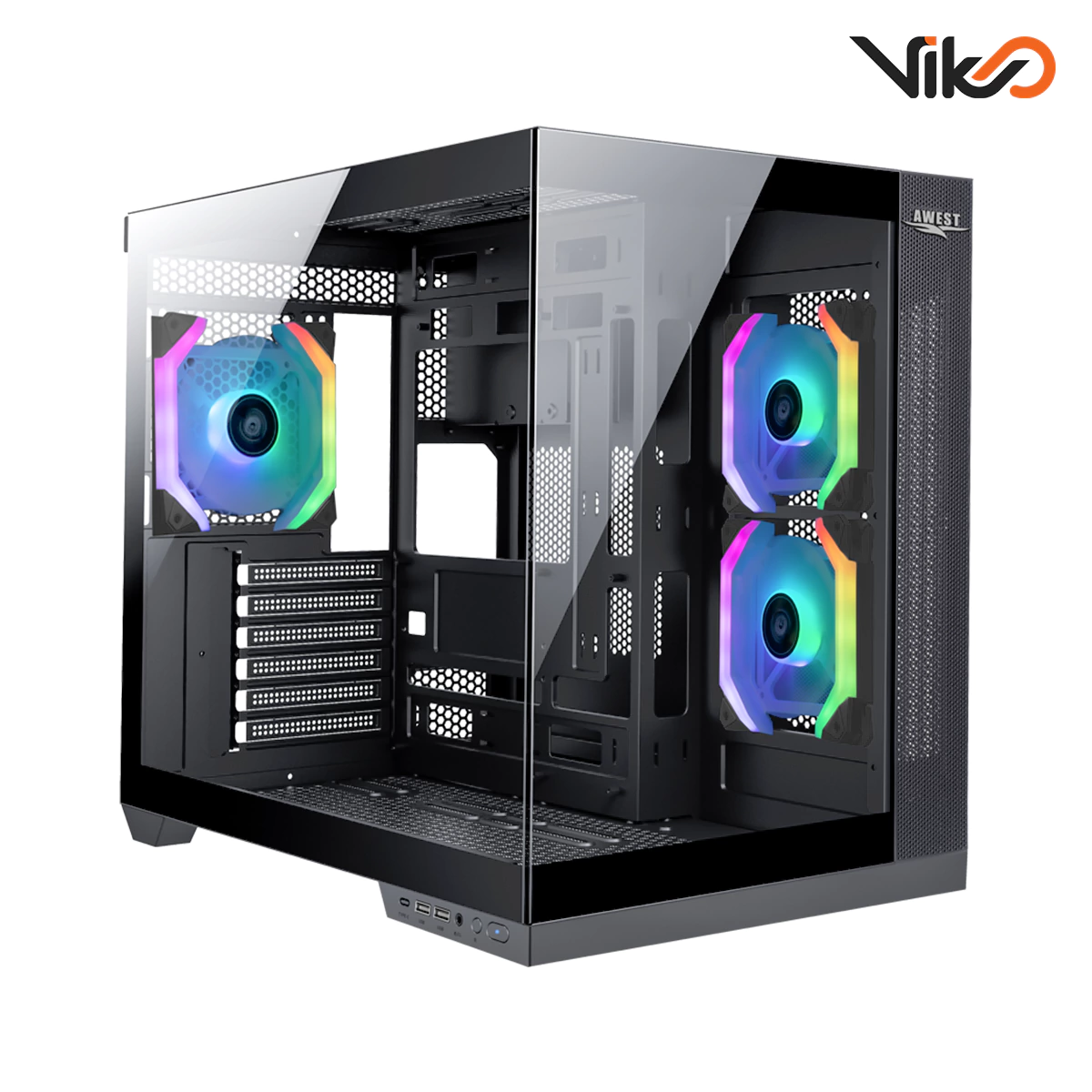 در بخش پنل جلویی، دو پورت USB 2.0، یک پورت USB 3.0 و یک جک صوتی 3.5 میلیمتری قرار دارد. نیازهای ارتباطی کاربران را بهطور کامل پوشش میدهد. کنترلر داخلی ARGB با پشتیبانی از نرمافزارهای مادربرد مانند، امکان هماهنگی کامل نورپردازی را فراهم میکند. طراحی مشبک پنل جلویی نهتنها جریان هوا را بهینه میکند، بلکه ظاهری تهاجمی و مدرن به کیس میدهد که در ترکیب با رنگ سفید، جلوهای خاص و متفاوت ایجاد میکند.